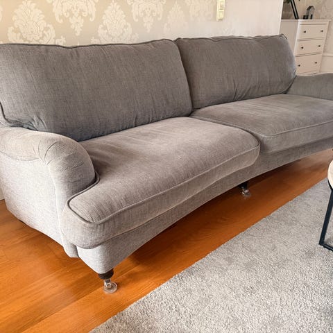 Vi säljer en svängd Howard Luxor 3-sitssoffa från 2021. Bredd 200 cm Djup 90 cm Höjd 70 cm Färg: Beige