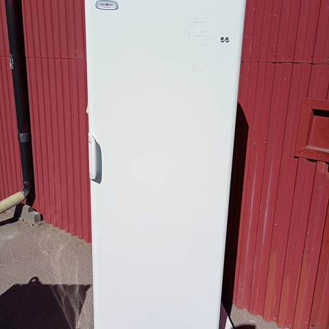 Vitt frysskåp från Cylinda med flera genomskinliga lådor invändigt. Enkel dörr med handtag på sidan och slät utsida. Det finns en rispa på skåpets vänstersida (om man står framför skåpet) finns i Bollnäs på ren att hämta