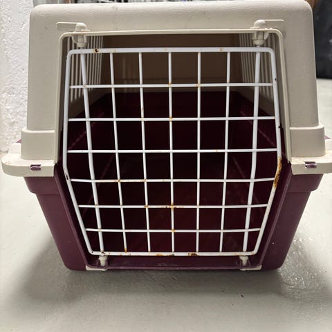 Hundbur plast med metallgaller vinröd/cream