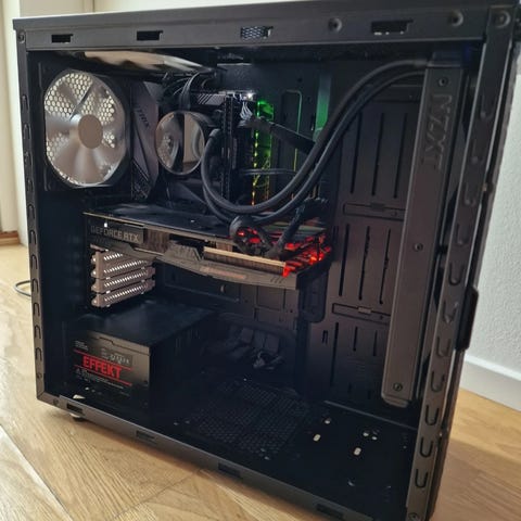 Saknar en hårddisk kabinett på bilden men lär hittas i en låda i förrådet. Bättre luftgenomströmning utan den ändå.
