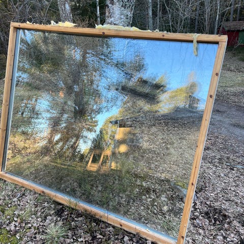 Efter rivning av en sommarstuga finns ett gäng fönster kvar. Bortskänkes mot hämtning.