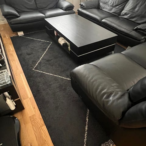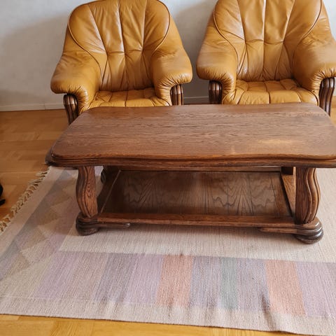 Köp allt för 699 kr eller soffa 500 kr, bord 300 kr och matta 50 kr.