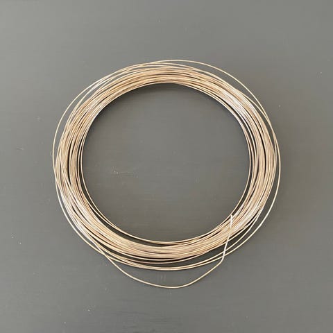 Nysilvertråd på rulle, tjocklek 0,6 mm och längd 10 meter. Ligger i originalpåse med etikett på framsidan.