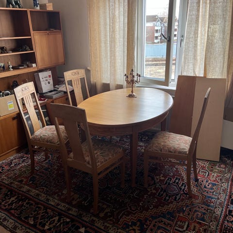 Köksbord i ek med 4 stolar