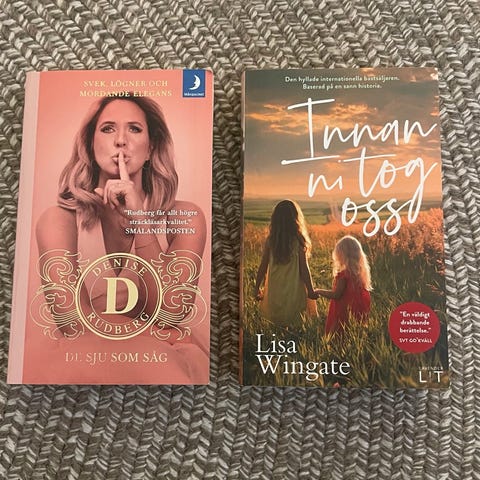 Två böcker av Nora Roberts: Ödesdalen och Längtan hem, båda i svensk pocket. Fina omslag med naturmotiv, text på baksidan är på svenska.