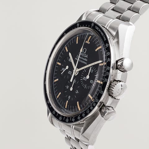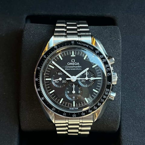 Klocka från Omega Pre-Owned. Den ikoniska månklockan, Omega Speedmaster med ett manuellt urverk. En ikonisk modell i stål med flertalet funktioner för en klassisk men ändock sportig klocka.