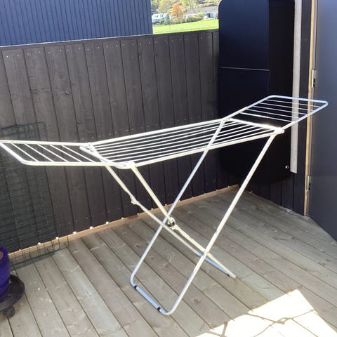 Säljer en helt ny torkvinda med tillhörande jordspjut. Aldrig använd, endast uppackad. Vindan är monterad på sjutet. Perfekt för dig som vill torka tvätt utomhus på ett smidigt och miljövänligt sätt.