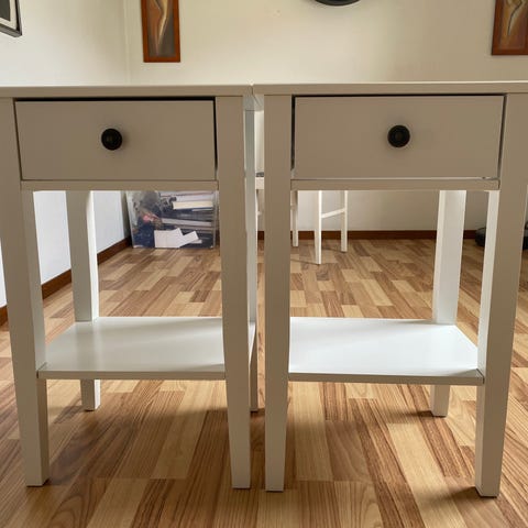 Två vita sängbord säljes. Stått i ett gästrum och är i mycket bra skick. Modell Hemnes från IKEA.