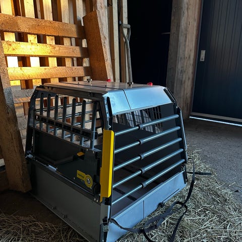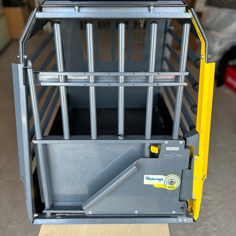 MIMSafe ProLine hundbur storlek: L för bil, robust metallbur med galler runtom. Framdörr med lås och ventilationsöppningar bak och på sidorna.