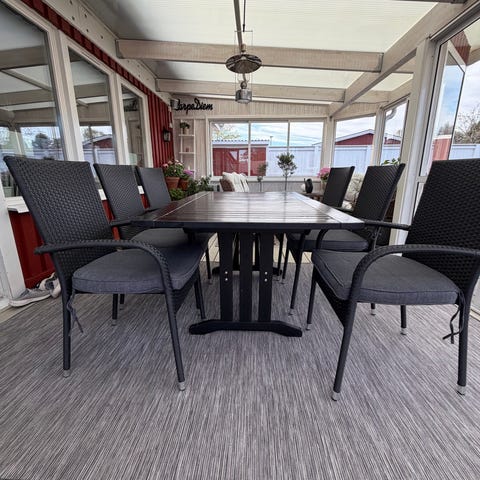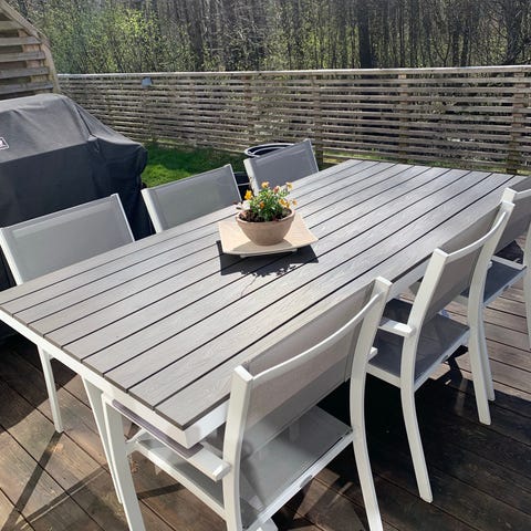Utemöbler matgrupp, bord med 4 stolar grå/vit