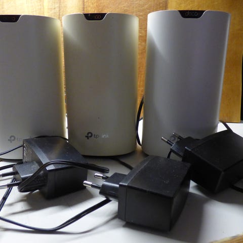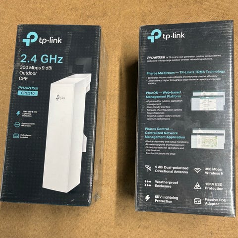 2 stycken TP-Link CPE-210 2.4 GHz outdoor nätverksenheter som ger trådlös uppkoppling utomhus. Smidiga att montera på vägg eller mast för att förstärka nätverket.
