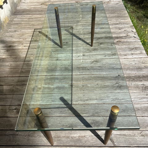Säljer ett riktigt snyggt soffbord i böjt klarglas – helt utan synliga ben eller metaldetaljer. Den eleganta vaterfallsdesignen talar för sig själv!