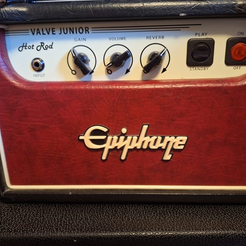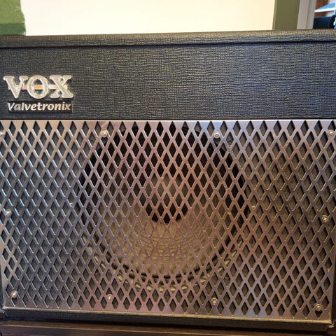 FBT Jumbo 200 gitarrförstärkare på 20W, 220V/50Hz. Har flera rattar för volym, diskant, mellanregister och bas samt inbyggd högtalare i kabinettet.