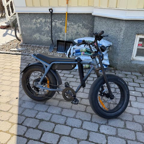Elcykel med stark motor. Antingen el-assisants vid trampning eller bara gasa.