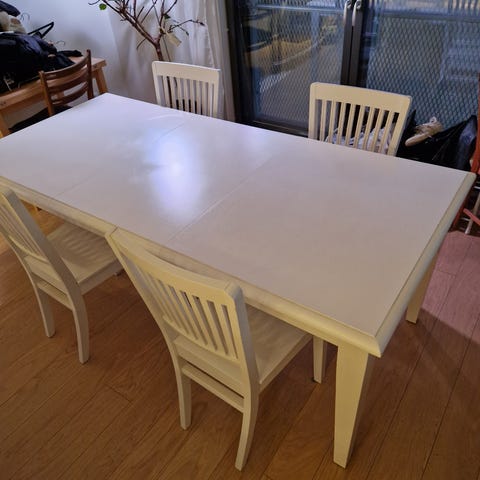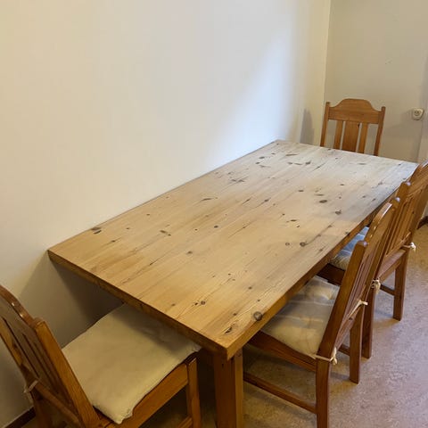 Matbord med 6 stolar bortskänkes, finns även helt ny skiva till bordet. Använt skick.