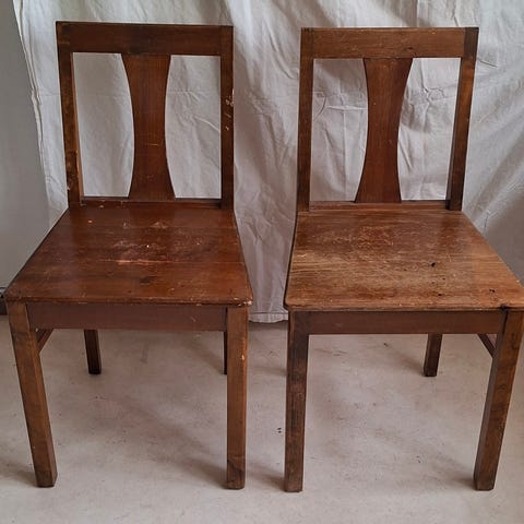 Två köksstolar i furu, Retro