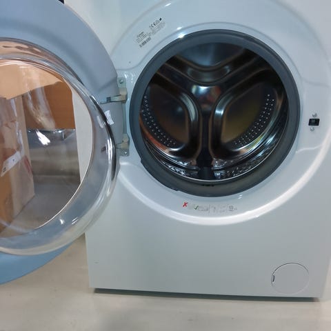 Miele Softronic W1713 frontmatad tvättmaskin i vitt utförande. Har tydlig display, vred för programval och stor rund lucka framtill.