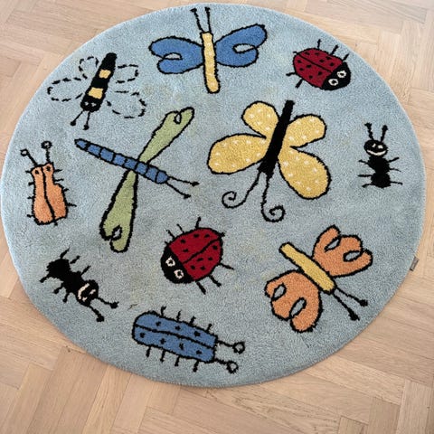 Barnmatta Graffiti röd är en handtuftad ullmatta från Kateha. Mattan är mjuk och skön och ett härligt mönster av bokstäver - perfekt för barnrummet.
