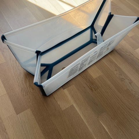 Smidigt badkar, hopfällbart för enklare förvaring och medtagande vid transport.