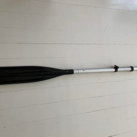 Träpaddel längd 149 cm och max bredd 19 cm respektive