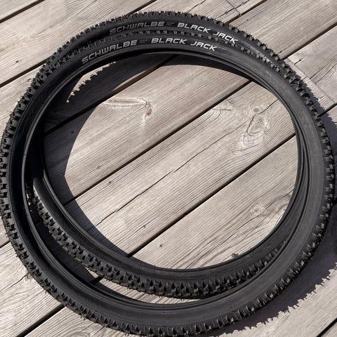 Schwalbe Kojak cykeldäck i storlek 27,5 x 1,35, svarta och släta för snabb cykling. Helt oanvänt, etikett sitter kvar på däcket. Erto 35-584.