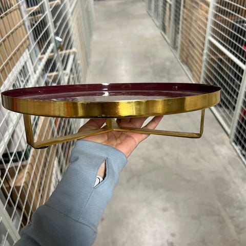Väggklocka från Bolia i grått med guldfärgade visare. Drivs av ett vanligt AA-batteri på baksidan.
