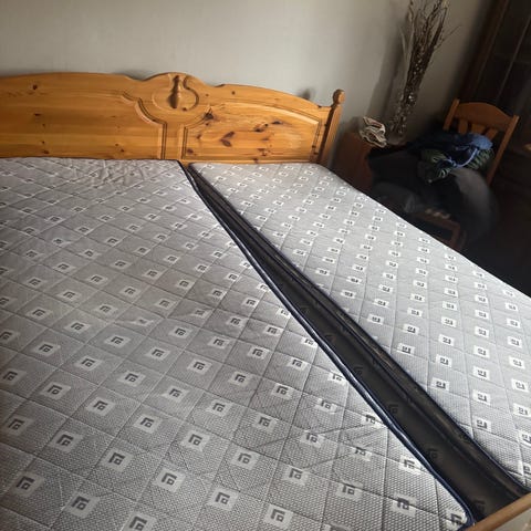 Madrasserna är fräscha och i bra skick. Sängen är stabil och redo att användas direkt.