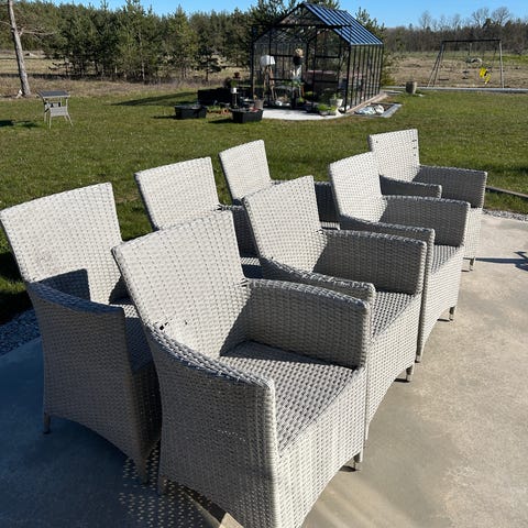 6st Grå konstrotting fåtöljer till uteplats/matbord