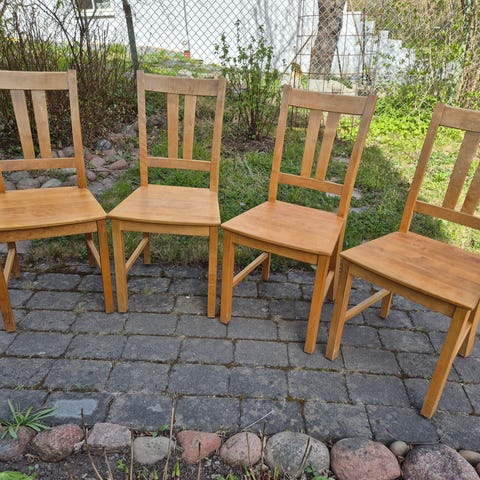 Säljer 6 st stabila och gedigna trästolar i rustik/lantlig stil.
