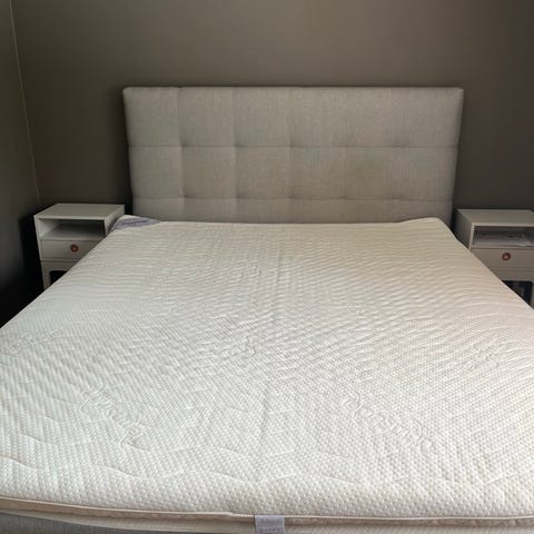 Säljes för att vi velat ha en något mjukare madrass. Madrassen är fast.