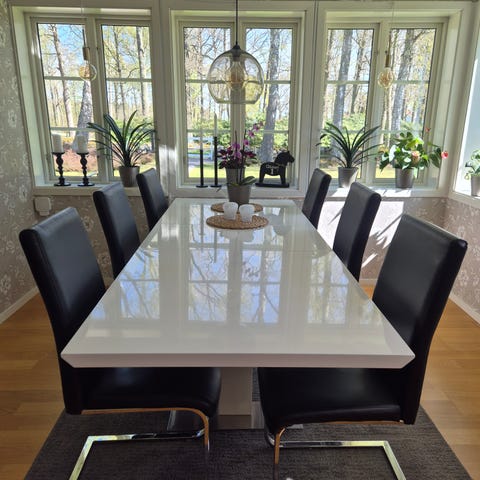 Säljer min Matgrupp som endast är två månader gammal. Bordet från möbelmästarna och stolarna från Mio. Bordet är 120 brett