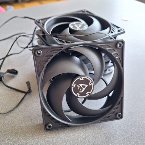 Arctic AIO-vattenkylare med 360mm radiator och tre svarta fläktar. Svarta slangar med kabelstrumpa och kompakt pumpblock för CPU.