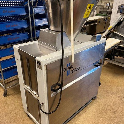 Paket med stor rostfri dubbel kyl och kraftig industrivispmaskin med bunke och visp, bra för storkök eller bageri. Med rejäl stekbord/gryta på stativ som har upphöjda kanter och avlastningsyta runt om.