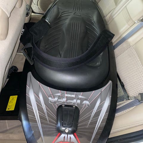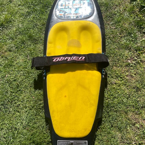 Jobe Stimmel kneeboard i röd/orange med svart handtag upptill. Halkskyddad ovansida med mönstrad yta och tydlig Jobe-logga. Obetydligt använd.
