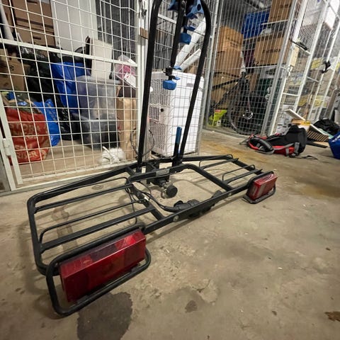 Thule EuroWay cykelhållare för dragkrok, plats för flera cyklar. Har skenor för hjulen, ramhållare upptill och bakljusramp med reflexer.
