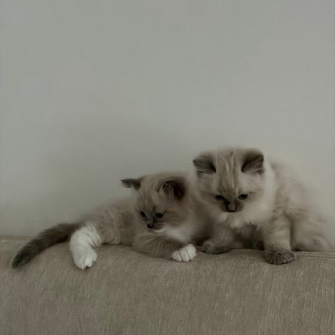 Vi har fina kattungar av Ragdoll mix som söker kärleksfulla hem. De blir 12 veckor den 23 maj och är då redo för leverans.