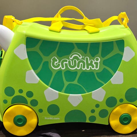 Rullar fint, men syns att den är använd på utsidan så som mindre repor och skav som blir på resväskor. På en av klisterlapparna är den namnad, men det går ju att ta bort. Själva madrassen är i bra skick, fräsch.