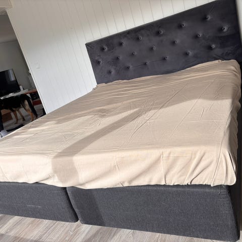 Supergammal dubbelsäng på 180 cm som vi fick med köpet av stugan. Har fungerat bra i 5 år men nu gör vi om och uppgraderar. ena madrassen har rosor efter fukt.
