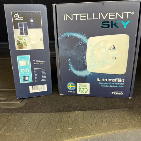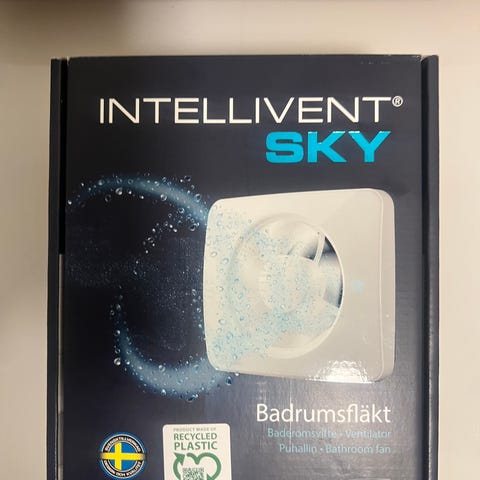 PAX Levante 00 badrumsfläkt i vitt, levereras i originalkartong. Tyst fläkt med fuktstyrning och timer som monteras på vägg eller i tak.