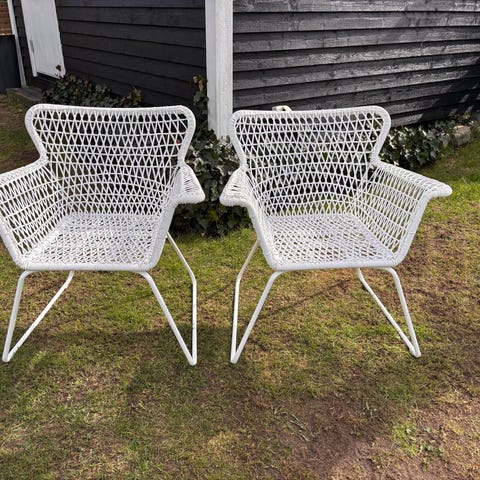 Skön rund retro snurrfåtölj i flätad rotting med metallfot. Passar bra som extra stol både inne och ute på altanen eller i trädgården.