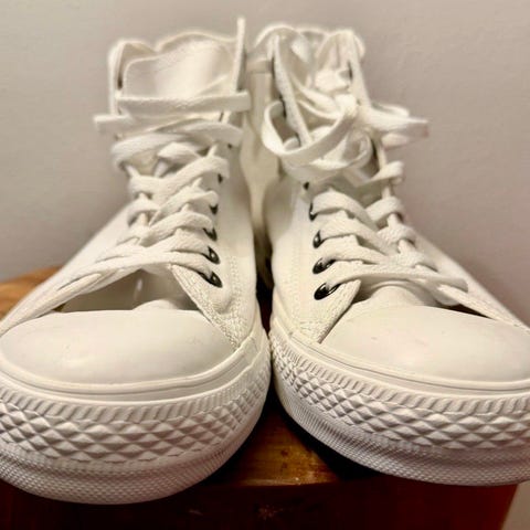 Vita Converse All Star sneakers i stl 42,5 med högt skaft och snörning. Gummisula och klassisk logga på sidan.