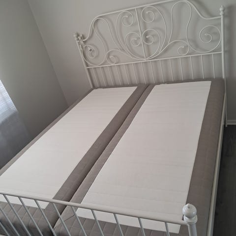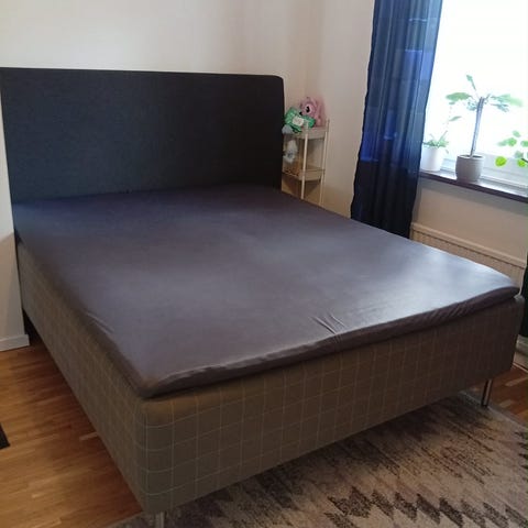 Kontinentalsäng 160x200 från Mio i svart med hög gavlar och två kuddar upptill. Stabil ram med ben och enkel, rak design som passar bra i de flesta sovrum. Madrassen är fasthetsgrader.