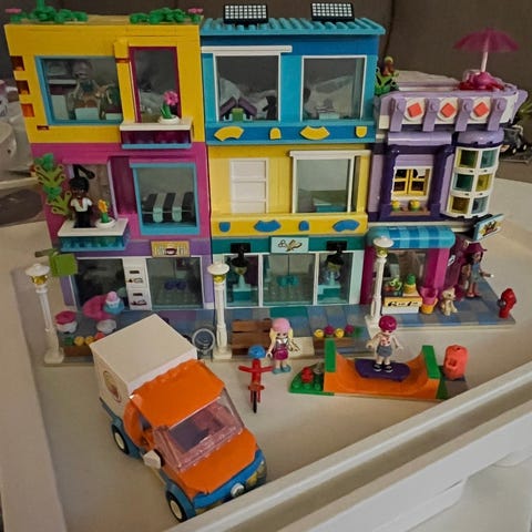 LEGO Friends set med tvåvåningshus och en minidocka. Flera rum, små möbler och detaljer både på fram- och baksida som går att bygga om på olika sätt.