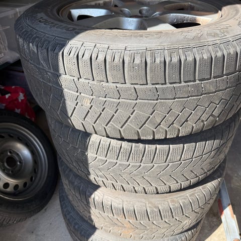 Däck/ mönsterdjup: snedslitna däck men fullt funktionella går bra att köra 1 säsong till! ( Bridgestone MS däck 4 mm )