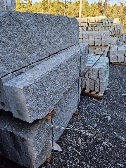 Rejäla kantstenar i granit såklart lite lätt fasade i framkant och ovansida för lite lyxigare utseende,snäppet innan den pråligaste borgmästar kantstenen.