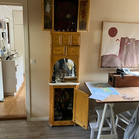 Härligt skåp med hyllor och liten låda