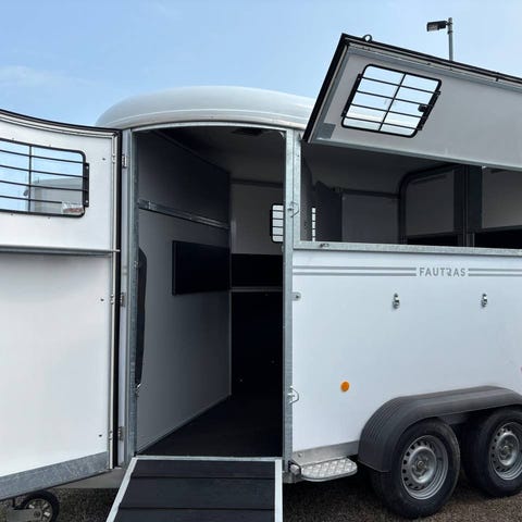 Våra hyrvagnar är alltid utrustade med säkerhetsframbommar lätt fällbara utifrån (utan verktyg), Innerdörrar bakom hästarna med bredåkarfunktion, aluminiumgolv, Hård ovanlucka och mjuk mellanvägg. Vi servar vagnarna 4 gånger/år.