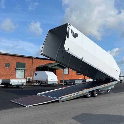 TrackDay vagnen är alltid rejält standardutrustad. Hel Bakgavel med lyfthjälp, Hydraulisk Tipp. 10” aluminiumfälgar med sommardäck, 1600 mm hög kåpa med invändiga lastbågar, lastlåsskenor längs hela sidorna, LED-belysning på vagnen.