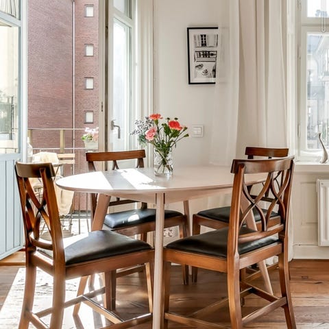 Fred matbord i massiv mörk ek 170x100 cm svarta metallben , här med stolen Rodham också från Rowico , Endast bord 7995:-,stolar 1595:- st
