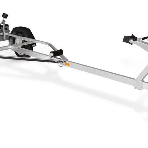 professionella detaljer såsom polyuretan kölrullar, uthållig vagga och fullstora 155R13 hjul. Denna trailer tar med lätthet båtar up till 14 fot och lastar 538 kg.